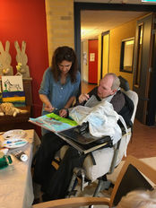 Prettig was de sfeer in deze mooie boerderij waar we kunstlessen op maat aan twee groepen gaven. De bewoners verrasten ons met hun gevoel voor schilderen. Ook hier lieten de bewoners zien dat ze, eenmaal aangezet, nog in staat zijn actief mee te doen met kunstlessen.